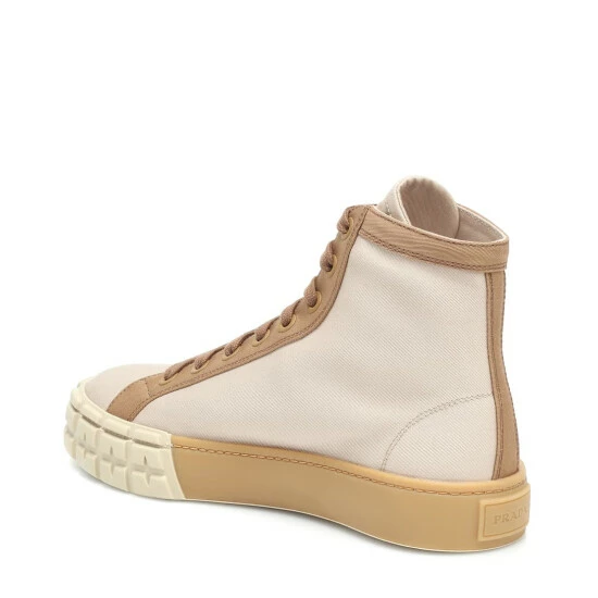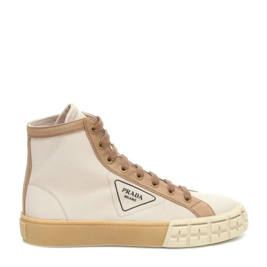 Prada’s Wheel high top sneakers have been crafted in Italy from a dynamic mix of neutral-toned canvas. Crafted in Italy, this pair secures with a lace-up fastening, and is set on a trekked rubber sole meant to mimic a tire wheel. Match its contemporary feel with distressed denim.
