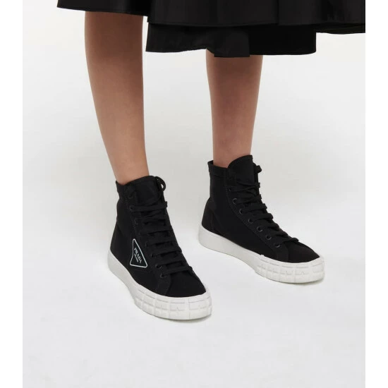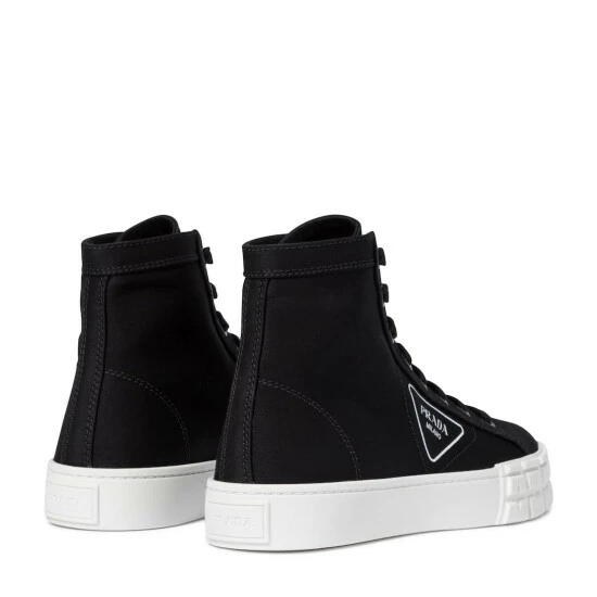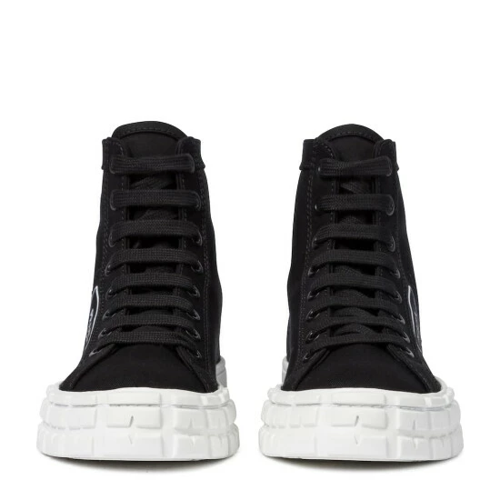 At first glance, the Wheel sneakers from Prada appear to be everyday trainers; upon closer inspection, you’ll notice their ridged rubber outsoles that reference motorcross tires. Made in Italy from black cotton canvas, this high-top style is quietly subversive in a characteristically Prada way.