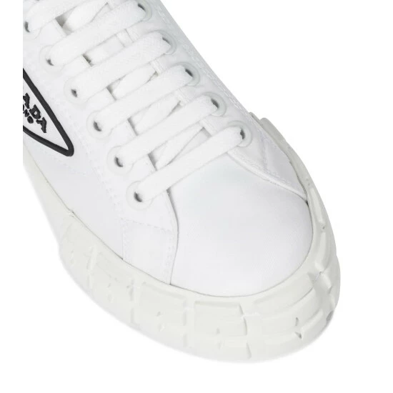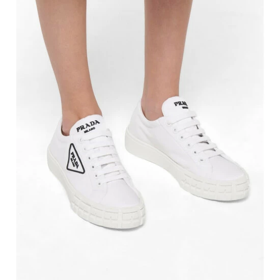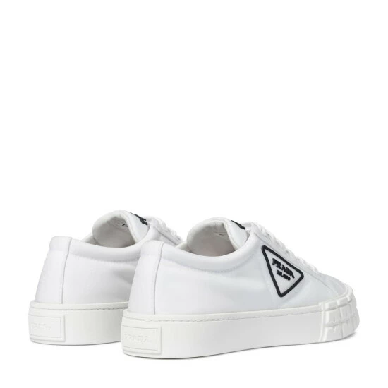 At first glance, the Wheel sneakers from Prada appear to be everyday trainers; upon closer inspection, you’ll notice their ridged rubber outsoles that reference motorcross tires. Made in Italy from the label’s recycled nylon, this clean white pair is both subversive and sustainable in a characteristically Prada way.