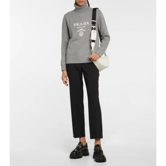 Update your knitwear rotation with cozy essentials like this mockneck sweater from Prada. Made from wool and cashmere, it’s completed with the Italian powerhouse’s logo intarsia for a bold note.