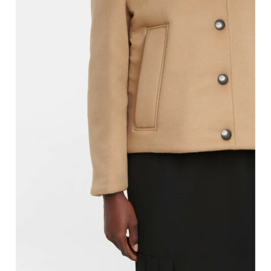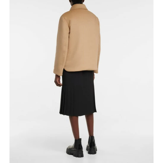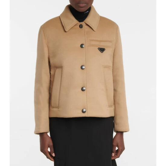 Prada offers a timeless, cutting-edge design for your cool-weather edit with this camel-colored puffer jacket. Made from wool, angora and cashmere, the boxy piece is finished with menswear-inspired detailing, including the pointed collar and slash pockets at the sides and chest. Decorated with Prada’s signature enameled triangle logo, this irresistibly soft jacket ensures unmissable recognition.