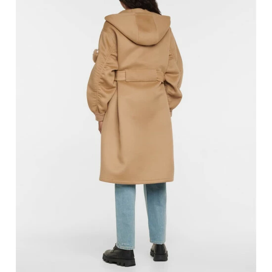 This utilitarian-inspired coat from Prada features various functional details, including a zipped pocket at the sleeve. The hooded design is made from wool and angora and is fully lined for comfort.