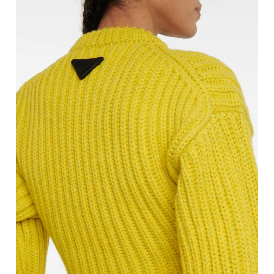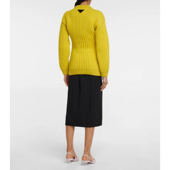 Inspired by vintage swimwear, this sweater from Prada’s new knitwear line is made from wool and trace the curves of a bra. Designed to a slim fit, it celebrates the natural contours of the female body.