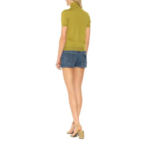 Turtlenecks are a key silhouette this season, and this short-sleeved option from Prada will give you plenty of styling opportunities. Made in Italy from pure wool in a chic olive green hue, it has the label’s logo in blue at the heart via an intarsia knit. Wear yours under jumpsuits during the colder months and easily transition into your spring wardrobe under overalls.