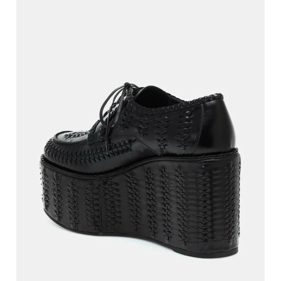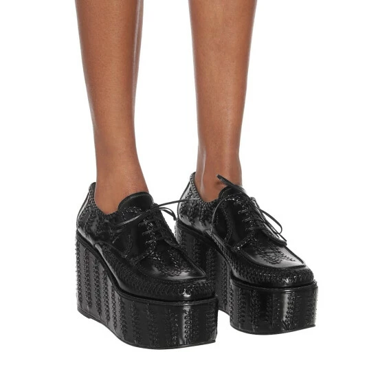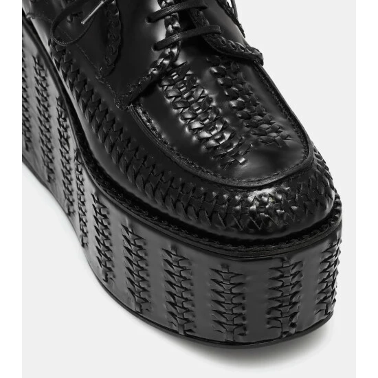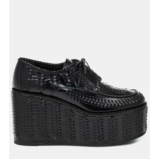 Elevate your 9-to-5 rotation with Prada’s black brogues, set on towering platform heels. The Italian-made pair are crafted from polished calf leather with a distinguished, all-over woven effect and tone-on-tone lacing. Pair yours with oversized suiting ensembles to audacious effect.