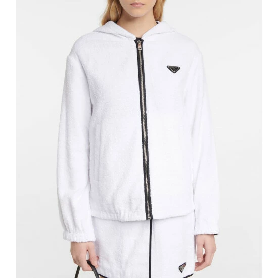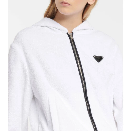 Prada enriches a classic athleisure look with this zip-up hoodie. It’s made from textured cotton terry with heat-locking elasticated trims and drawstring ties, while an enameled logo plaque lends instant recognition.